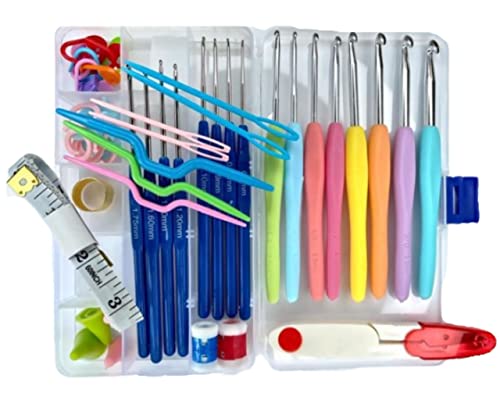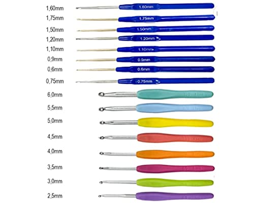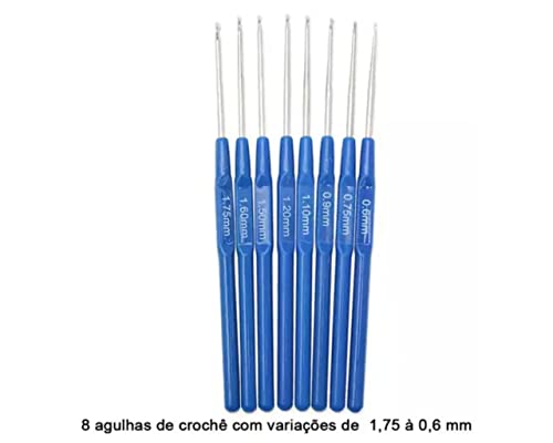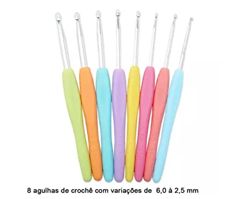 Kit de Crochê Completo Lanmax Agulhas e Acessórios. Este Kit Contém: – 8 Agulhas de Crochê com Cabo Plástico em 8 tamanhos diferentes (0,60mm, 0,75mm, 0,90mm, 1,10mm, 1,20mm, 1,50mm, 1,60mm, 1,75mm) – 8 Agulhas de Crochê com Cabo Emborrachado de 8 tamanhos diferentes (2,5mm, 3,0mm, 3,5mm, 4,0mm, 4,5mm, 5,0mm, 5,5mm, 6,0mm) ESSAS AGULHAS NÃO FICAM DENTRO DA CAIXA – 1 Fita Métrica de 150cm – 10 Marcadores de Pontos Cadeado – 4 Protetor de Pontas em 2 tamanhos diferentes – 10 Segurador de Pontos em 2 tamanhos diferentes – 2 Contadores de Carreira em 2 tamanhos diferentes – 3 Agulhas para Trança em 3 tamanhos diferentes – 4 Agulhas Plásticas para Costura em 2 tamanhos diferentes – 1 Dedal Anel – 1 Tesoura Pequena de Tecelão – 1 Estojo Plástico Neste kit você encontra agulhas em vários tamanhos, e acessórios mais essenciais para iniciar seu crochê.