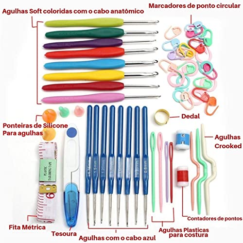 Kit Crochê Com 16 Agulhas Acessórios e Caixa Organizadora Artesanato Iniciante Frio
