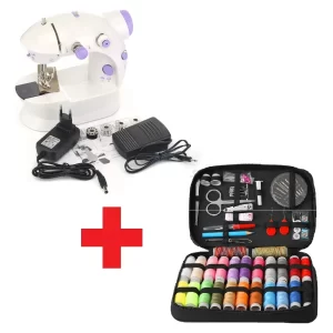 Mini Máquina de Costura Portátil Com Kit de Costura Cor Branco